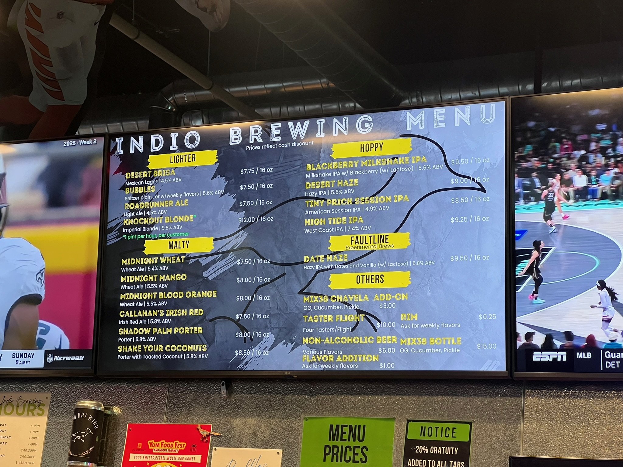 Here at Indio Brewing, we are a part of the Indio community. While we have only just opened, we strive to make a positive impact on the community. For starters, we are partnering with local Indio businesses wherever possible. One of our first partners, Mix38, supplies the chavela mixes to us. Mix38 is a business in North Indio, only 1 mile up the road. Unique Bites Eatery, only a few units away here in the Shadow Hills Plaza, will bring food in ordered in person, online, or via phone to the brewery. Our merch, such as keychains, hats, shirts, and tumblers are engraved / printed here in Indio. Many of the food vendors we host are also here in Indio, such as TKB and Dad’s Burgers. Beyond these Indio business relationships, we are working with other small businesses in the Coachella Valley and looking to integrate local ingredients into our brews, where possible. We are currently working on a beer using Candy’s Dates, and looking for additional collaborations with local ingredients. Stay posted to see these beers as they are announced. As we get past the open phase of the brewery, we plan to engage more in the community that we are lucky to be a part of.